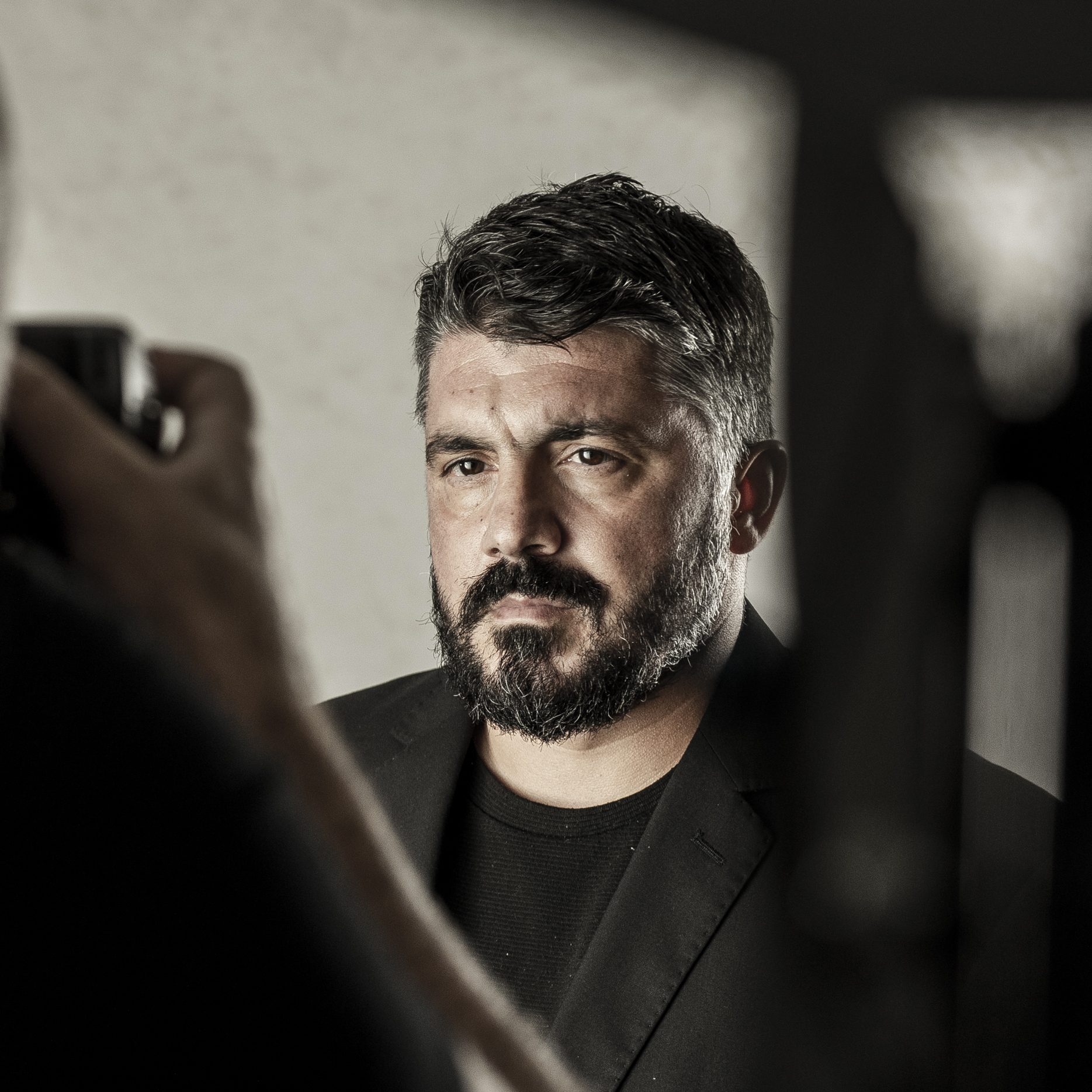 Le immagini, in bianco e nero, ritraggono l’allenatore del calcio Napoli Gennaro Gattuso, il portiere Alex Meret, l’attaccante belga Dries Mertens ed il difensore greco Kostas Manolas.