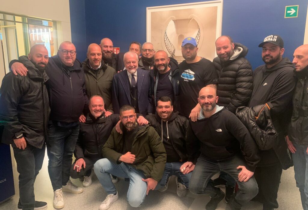Aurelio De Laurentiis nella foto con gli ultras del Napoli.