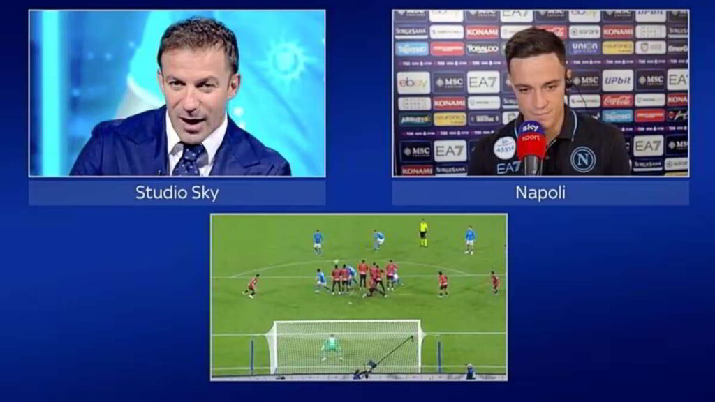 Dopo il gol su punizione in Napoli-Milan, Del Piero ha fatto i complimenti a Raspadori: “Hai trovato una traiettoria perfetta, bravissimo”.
