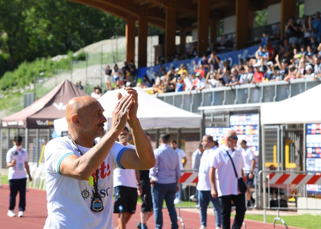 RITIRO NAPOLI. Stamattina è iniziato ufficialmente il ritiro del Napoli. Sul campo di Carciato di Dimaro Folgarida è stato svolto il primo allenamento agli ordini di Luciano Spalletti. La squadra è scesa in campo alle 10.00: ha inizialmente salutato il pubblico presente e poi si è messa a lavoro. Il gruppo dopo una fase di attivazione in palestra si è spostata sul campo dove ha svolto attivazione in movimento, lavoro aerobico ed esercitazioni tecnica a gruppi. Zanoli ha svolto i consueti test medici e svolto parte della seduta con la squadra. Da evidenziare la grande euforia del pubblico partenopeo che ha salutato la squadra per il debutto della stagione 2022/2023.