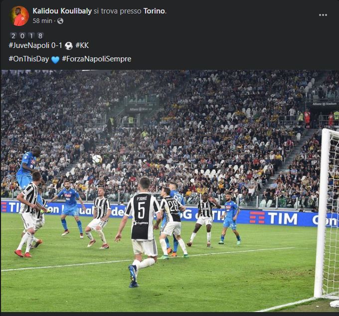 Kalidou Koulibaly pubblica la foto del suo gol alla Juventus, quello del 2018 quando il Napoli vinse a Torino allo Stadium. Un ricordo dolce ed amaro per i tifosi partenopei, perché il gol di Koulibaly, solo a pensarci, fa emozionare chiunque. Quel colpo di testa segnato all’Allianz Stadium fece impazzire i tifosi del Napoli, che videro la corsa scudetto riaprirsi all’improvviso. Poi sappiamo tutti come andò a finire, con le polemiche su quel fallo di Pjanic contro l’Inter che dopo 4 anni non si smorzano.