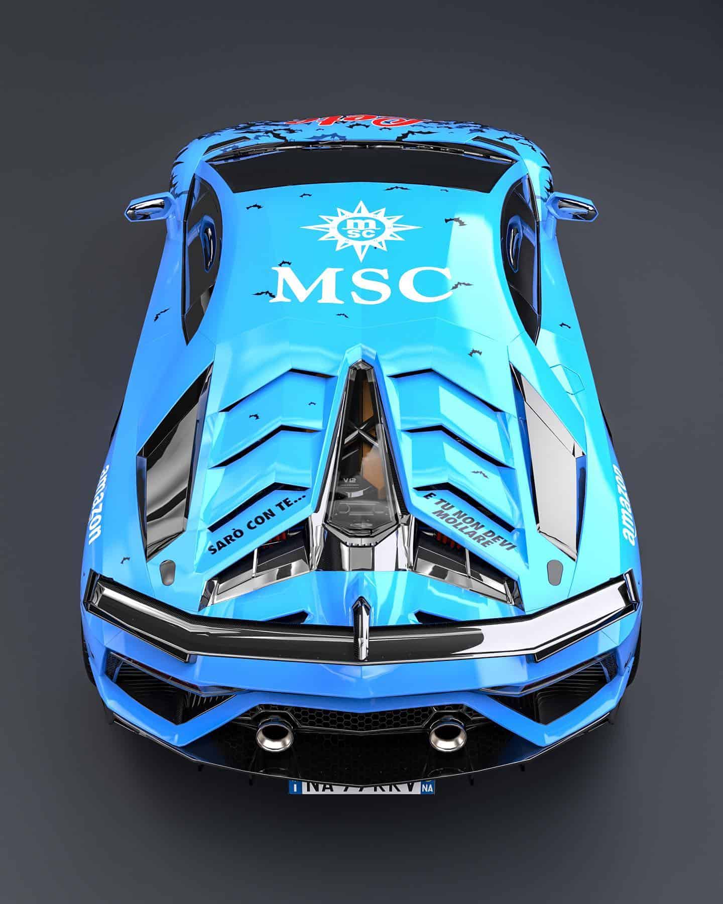 Se la jersey nel calcio è l’equivalente della livrea per l’automotive, il Napoli è la factory creativa più prolifica del panorama calcistico e proprio prendendo ispirazione dall’ultima release, ecco la Lamborghini Aventador SVJ in versione azzurra halloween con alcuni elementi dedicati al giocatore rivelazione di questa stagione” scrive la società sui propri canali social.