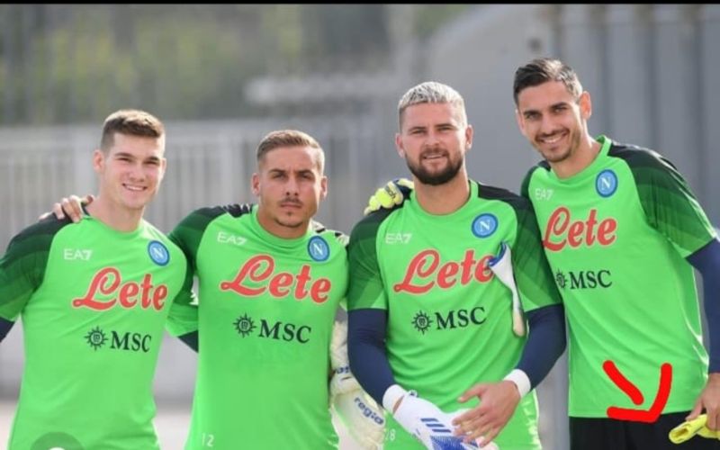 Ma dopo aver visionato le ‘prove’ video che ci ha fornito l’autore di quella ripresa, abbiamo potuto vedere meglio che effettivamente il portiere che commette l’errore è Meret e non Marfella. Lo si capisce dal fatto che uno dei portieri in campo ha i capelli biondi ed è Contini, ma anche da un altro dettaglio come i colori dei guanti di Meret di colore giallo (come si vede dalla foto pubblicato su instagram proprio dal portiere), mentre Marfella utilizza guanti blu.