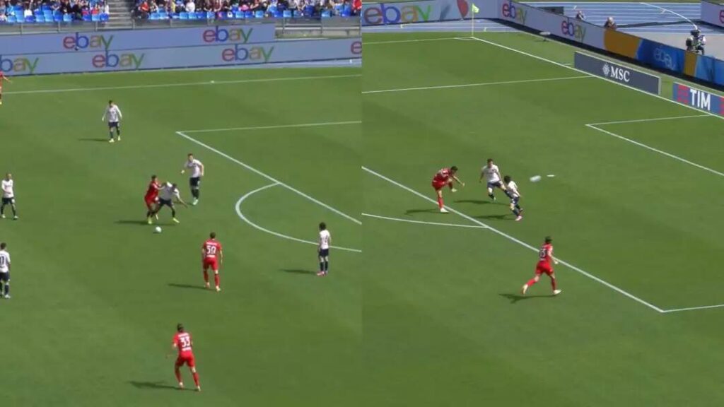 Sul gol del vantaggio atalantino, il Napoli ha richiamato l’arbitro per un fallo di Scamacca, con una spinta su Rrahmani che ha fatto finire a terra il difensore azzurro nel tentativo di liberare l’area. Un intervento irreegolare, che l’arbitro Pairetto e il VAR non hanno richiamato