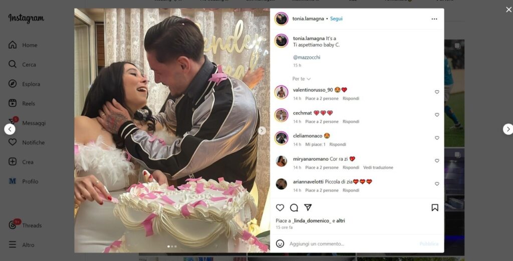 La gravidanza era stata resa nota dalla coppia già lo scorso dicembre sui social. Ora è arrivata la lieta notizia del sesso del nascituro, che renderà Mazzocchi padre per la prima volta.