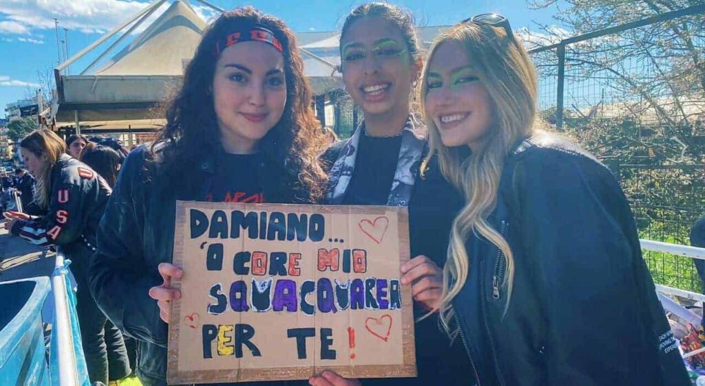 Insieme ai fan, c’è anche Gerardo, un salernitano di 56 anni che, nonostante l’età, apprezza moltissimo la musica dei Maneskin, definiti da lui stessi “molto innovativi”. E la presenza di un pubblico decisamente più maturo non sembra sminuire l’entusiasmo del pubblico più giovane, che aspetta impaziente l’inizio del concerto.