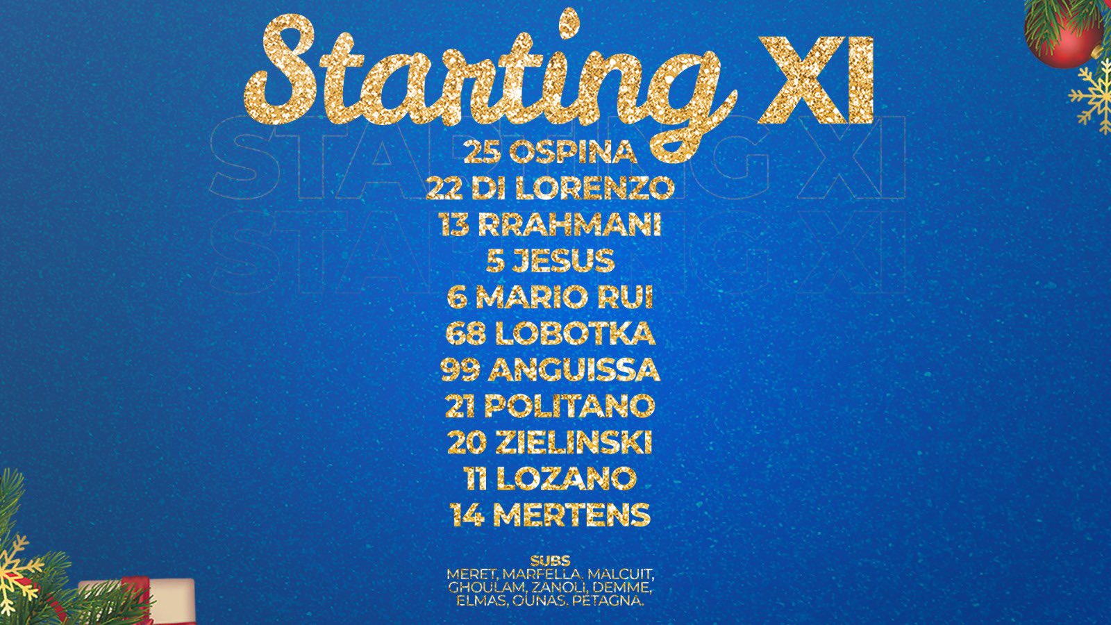 Napoli (4-2-3-1): Ospina; Di Lorenzo, Rrahmani, Jesus, Mario Rui; Lobotka, Anguissa; Politano, Zielinski, Lozano; Mertens. All.: Spalletti