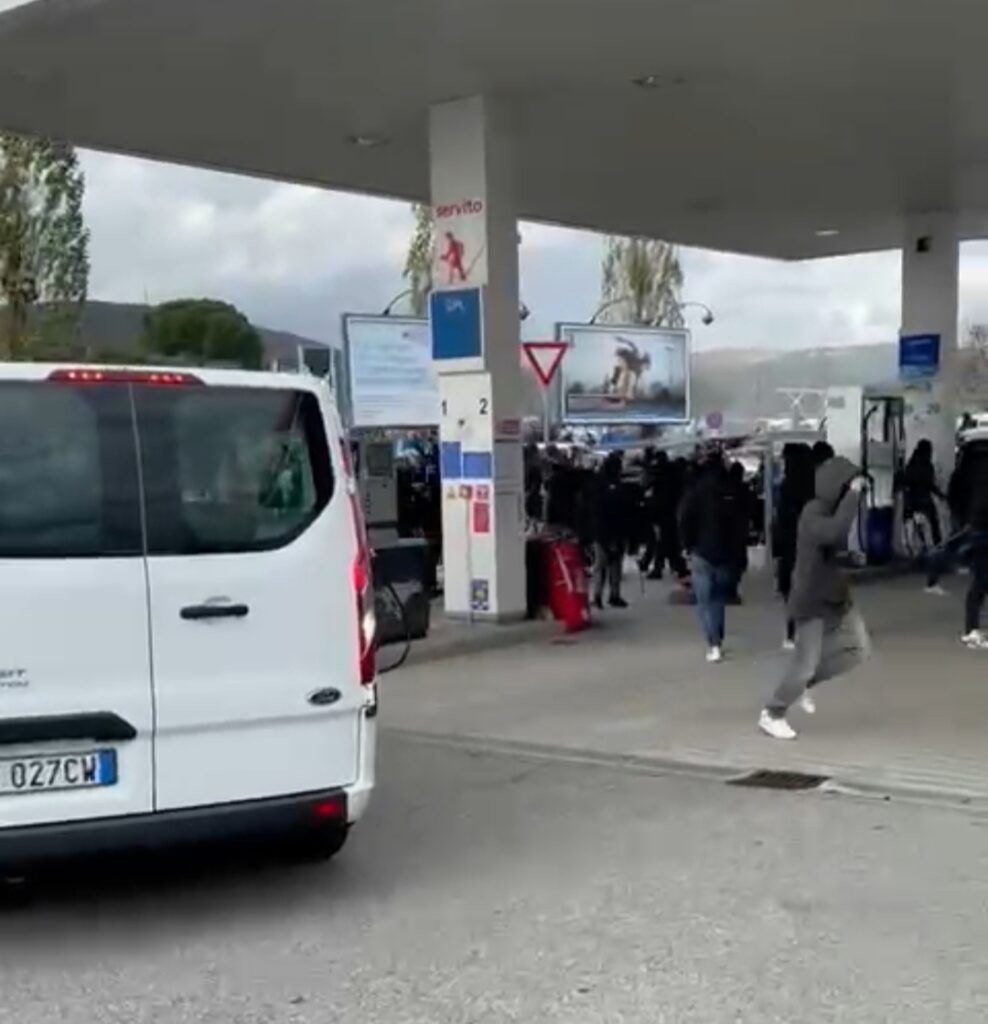 Scontri tra ultras del Napoli e quelli della Roma. Autostrada A1 chiusa per gli sconti nel tratto Monte San Savino e Arezzo.