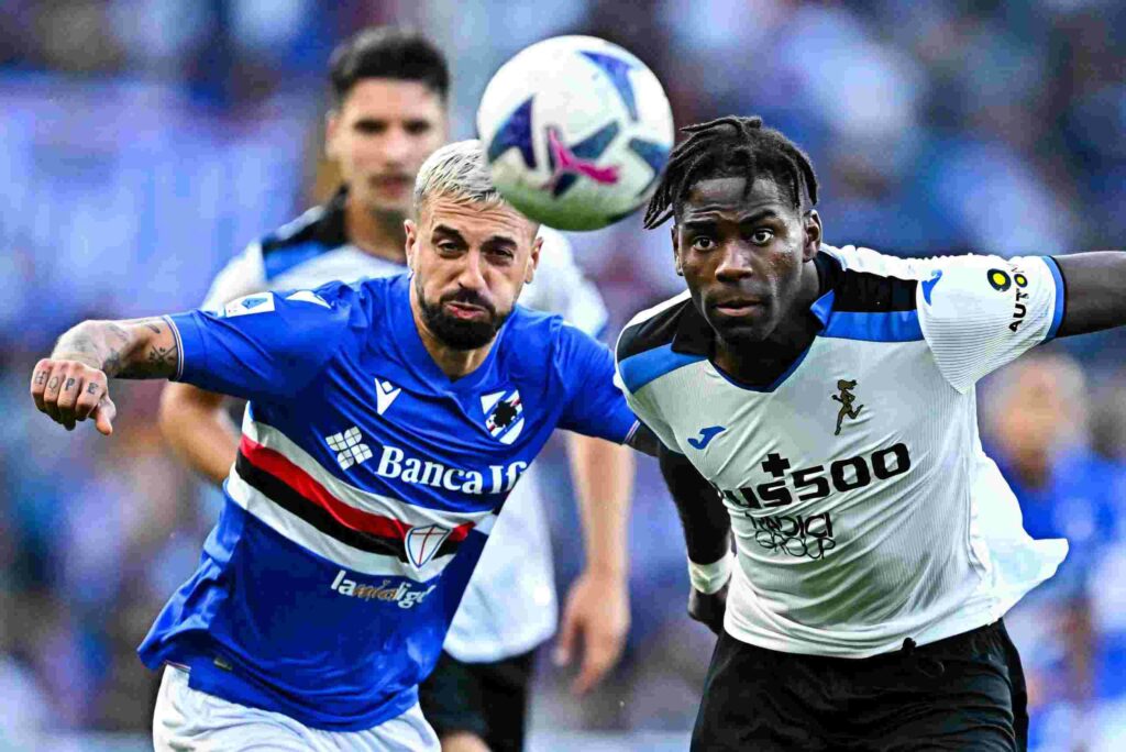 Gol annullato a Caputo in Sampdoria-Atalanta dall’arbitro Dionis che va al Var e vede un fallo inesistente di Leris su Maehle.