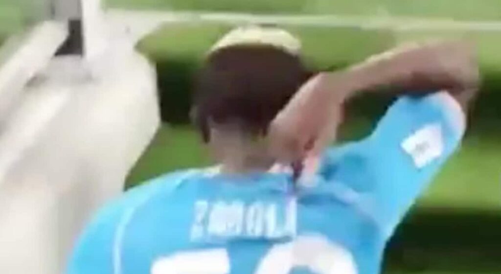 Mentre si dirigeva verso gli spogliatoi, ai supporters che gli chiedevano la maglia l’attaccante nigeriano ha mostrato il numero 59, quello del compagno Zanoli. Osimhen aveva infatti già regalato la sua maglia numero 9 a un giovane tifoso del Napoli, accorso in campo a fine partita.