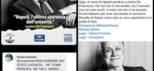 L'immagine del professore Luciano De Crescenzo coi simboli della Lega sta suscitando moltissime polemiche in rete, coinvolto anche Severino Nappi....
