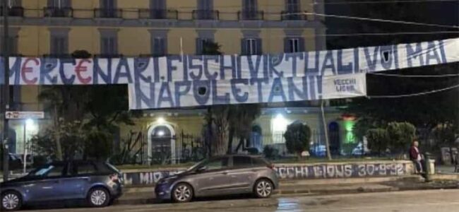 Nuovo striscione contro De Laurentiis apparso in città a firma dei "Vecchi Lions": "Mercenari, fischi virtuali... voi mai napoletani" ....