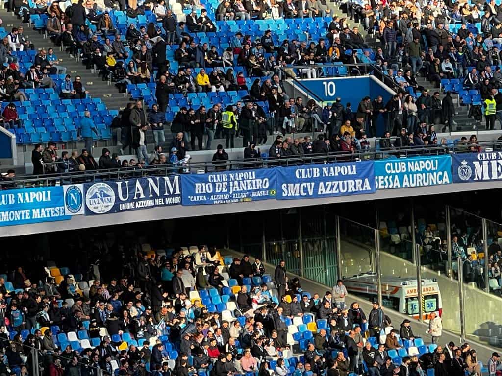 Il Maradona ancora pieno in ogni ordine di posto, ha accolto tifosi provenienti da tutta Italia, da Udine a Cagliari, passando per Ferrara e Santa Maria Capua Vetere, ma anche per i club di Rio de Janeiro, Buenos Aires e del Lussemburgo. Tutti che fanno parte del gruppo UANM (Unione Azzurra nel Mondo) che era presente al Maradona a godersi uno spettacolo favoloso, che solo Napoli riesce ad offrire.