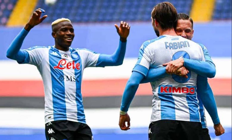Fabian Ruiz e Osimhen firmano la vittoria del Napoli sulla Sampdoria. Gattuso reagisce subito al ko con la Juve, sbanca Marassi battendo 2-0 la Sampdoria di Ranieri e si tiene in corsa per il quarto posto. La sesta vittoria nelle ultime otto partite consente agli azzurri di arrivare nelle migliori condizioni ai prossimi due impegni con Inter (domenica 18) e Lazio (giovedì 22): nella doppia sfida al “Maradona” in cinque giorni si deciderà probabilmente la stagione.